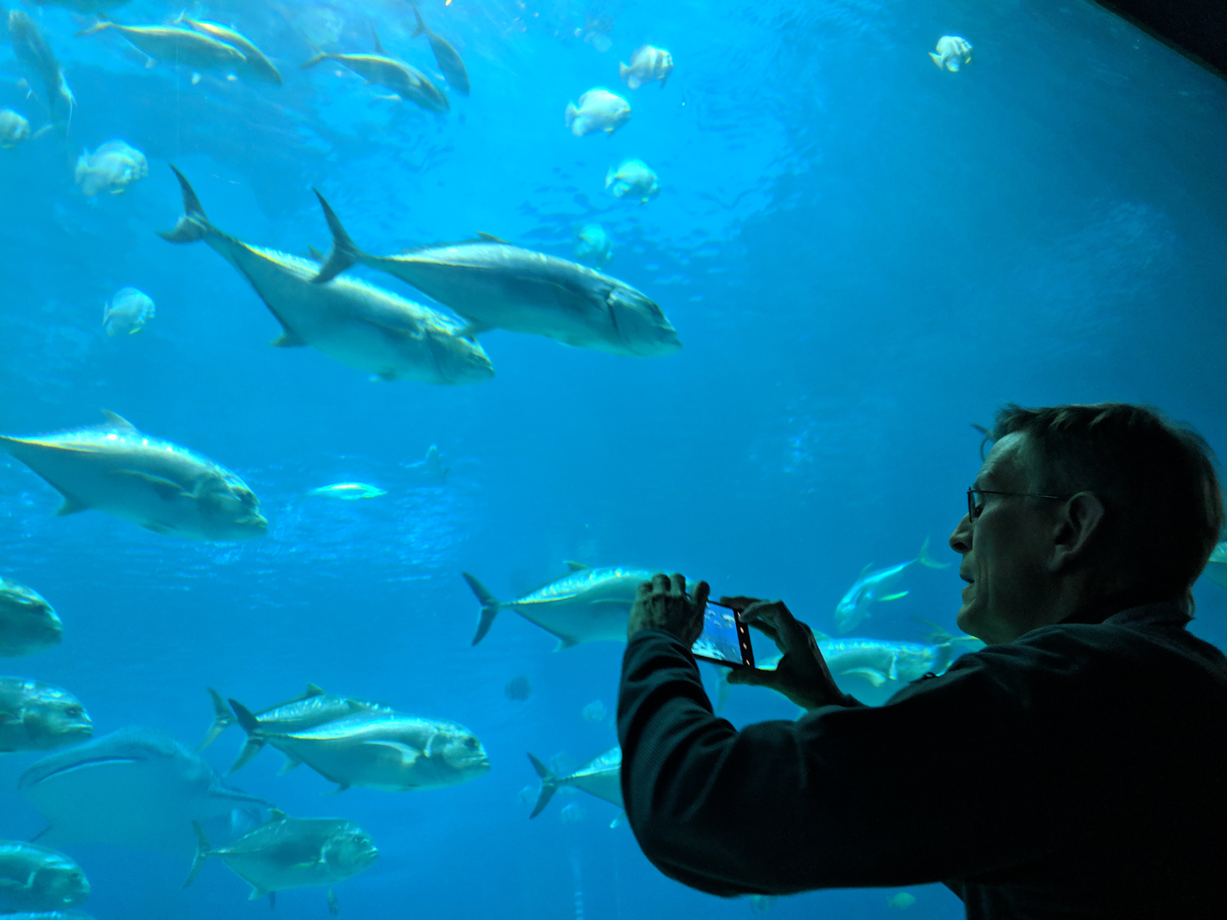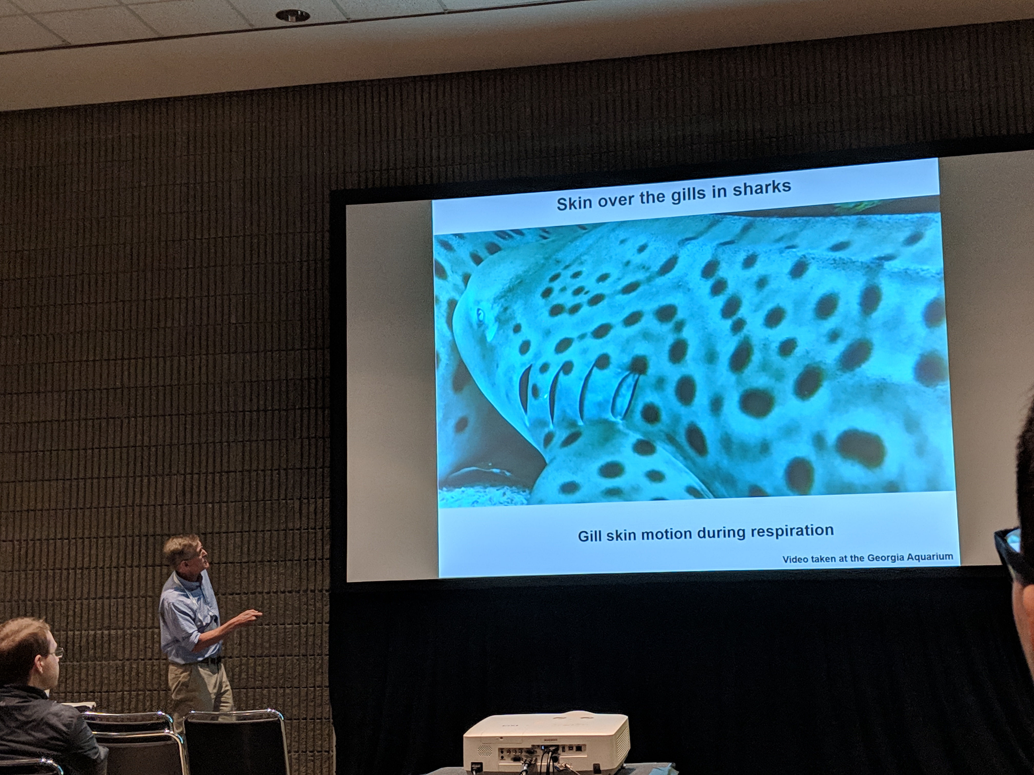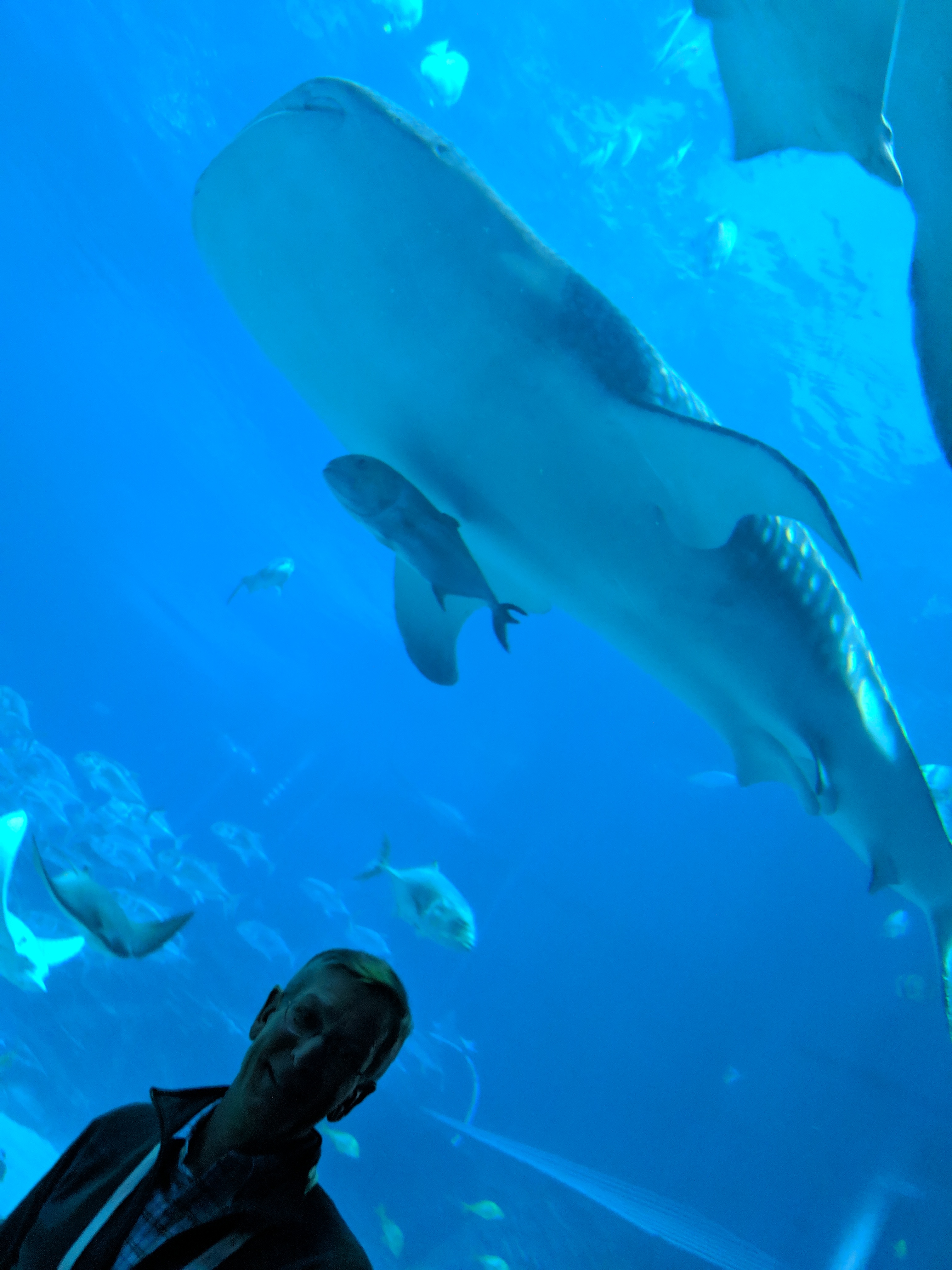 The reception was amazing. This conference was held in Atlanta, GA, organized by two GT professors (one of whom I had worked with briefly on the Antarctica pteropod project, Don Webster). And when you have 3000+ people who all research some aspect of fluids, the only place you could consider to hold the reception was the Georgia Aquarium, of course. (The scuttlebutt around the water cooler, from the organizer himself, is that this reception alone cost six figures! Jeezus.) It was crowded, but oh so marvelous. And George was a walking encyclopedia! Some engineers thought the whale sharks were whales, for example, and George happily chimed in after hearing that. I didn’t do too bad, myself, correcting people here and there (like the lady who thought the small sturgeon in the fresh-water exhibit were baby sharks!). It was fun to be the biologist in the rooms of engineers.